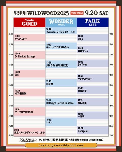 中津川 WILD WOOD 2025(WONDER WALL ステージ O.A 10:20〜)